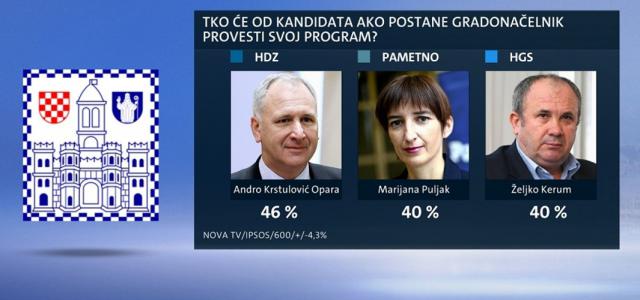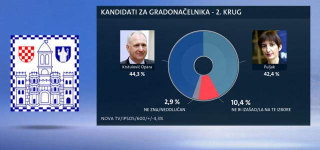 U drugom krugu - prema anketi - Opara bi bio bolji i od Keruma (49,0 : 32,1) i od Puljak (44,3 : 42,4).