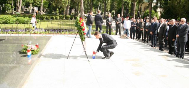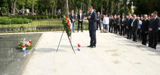 Izaslanstvo Hrvatske demokratske zajednice - predvođeno glavnim tajnikom (i predsjednikom Hrvatskog sabora) Gordanom Jandrokovićem - položilo je vijenac i zapalilo svijeće na zagrebačkom Mirogoju na grobu utemeljitelja stranke i moderne Hrvatske dr. Franje Tuđmana na 95. godišnjicu njegovog rođenja.